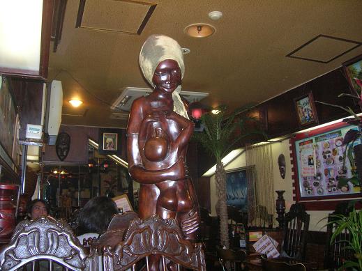 お店の中はハイチの彫刻や絵画などで彩られ、異国情緒が漂います。