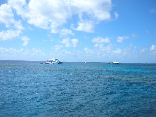 さぁて、今日は遂にGreat Barrier Reef (GBR)で初ダイビング。ちと早めにお迎えが来てマリーナで船に乗り込む。BGRのスポットまで約1時間半。周りの景色を見ながらY太郎とクッチャべって時間を過ごす。鮮やかな蒼と緑の海が広がっていく。今日は快晴!波も高くなくダイビングには最高の日だね。途中でインストラクターSojiからブリーフィングがあったりで結構あっという間に到着。スポットに着く15分前くらいから装備を用意して着込む。船が停止したらすぐに、ドボン。