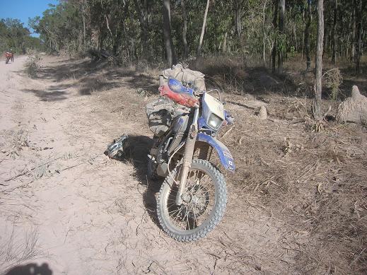 12時半にLauraに到着し給油と昼食を取る。ここまで来れば、もう楽チンですな。Lauraを出て、初日に大転倒した地点で停車する。なんでこんなところでコケたんだろう、って言うくらいなんも変哲も無いフラットダートなんだよね。まぁ、舗装路とダートの境目はちょっとルースになっていてハンドルが捕られやすいんだろうけど。ここでコケなかったらこの旅ももっと楽しめたんじゃないかな?ってちょっと反省。自分の不注意から転倒したんだからね。