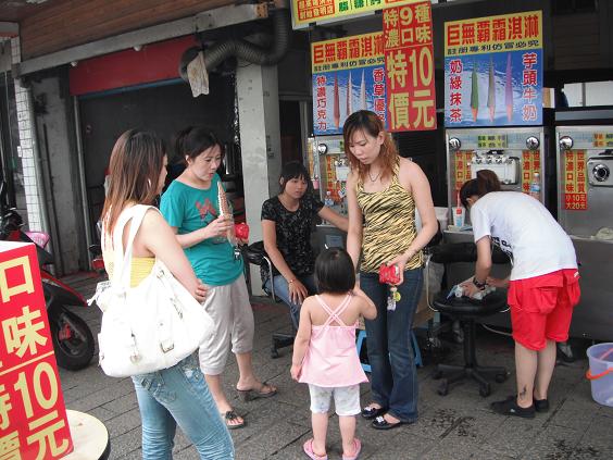 On the way back to the station, I went to the river side street to get some foods and had Chinese grilled sausages and 2 cones of soft served ice cream. The soft serve was so cheap, cost me NT$10 = 35cents! And it wasn't small at all. Please see the photo above.