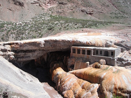プエンテ・デル・インカは温泉から出た硫黄などの鉱物が橋状に固まったところ。ロンプラでは「アルゼンチンで一番の不思議」とありましたが、大したこと無し。