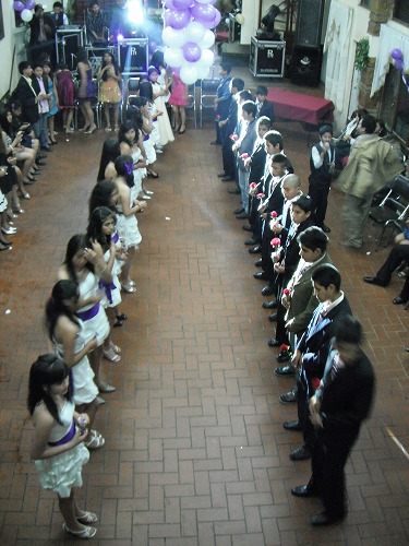11時過ぎにようやく音楽が一旦とまり、セレモニー。14組の男女のペアが整列し、それぞれがニコルの1年を象徴します。そしてニコルが登場し、お父さんとダンス。流石南米、ダンスがやはり重要なんですねぇ。