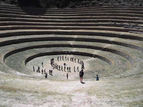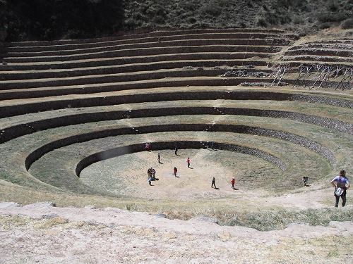 マラス(Maras)の街からモライ遺跡まではダート。まぁ、走りやすいのですが、ホコリまみれに。モライ遺跡は例の10日間周遊券に含まれています。また入場料70ソルとかかと思いましたが、モライ遺跡単独で10ソル。これなら手軽に入れますね。