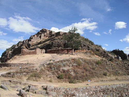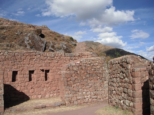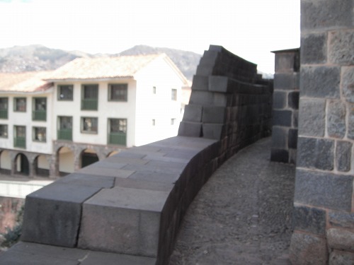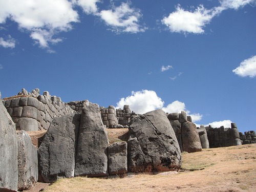 宿からは歩いてほんの20分もかからないところに遺跡はあります。まぁ、結構階段は登りましたが。クスコの街中よりも大きな石を使った「城壁」があります。実際城塞の機能はないので城壁ではないのですが。