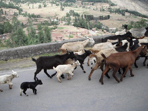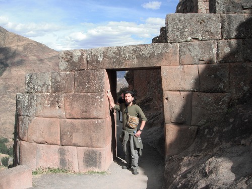 トモ君と2人で驚嘆しながら見て回ります。ヒツジもビックリしてました。いや、本当に素晴らしい。ここは来た甲斐がありました。どうやって建築者はこの巨大な石を運搬し、角度を付けて組んだのでしょうか。もっと小さな石(クスコ市内のように)で建造すれば楽だったはずなんですが、何故でしょうね。