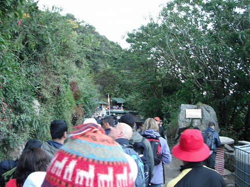 しかし!ワイナピチュ登り口で行列に並んで待っていると、「スタンプが無い人は駄目だよ」と。どうも遺跡入り口で先着400人にスタンプが押されるそうです。なるほど、だからスタンプを押してもらった人は余裕で写真を撮っていたんだな…。