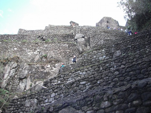 登り口で400人限定チケットを配っていると聞いたいたもので。遺跡内を突っ切ります。それにしても、マチュピチュ、イイですねぇ。かなりの人がワイナピチュを目指さずに写真を撮ったりしてます。これはチャンス有り、か!