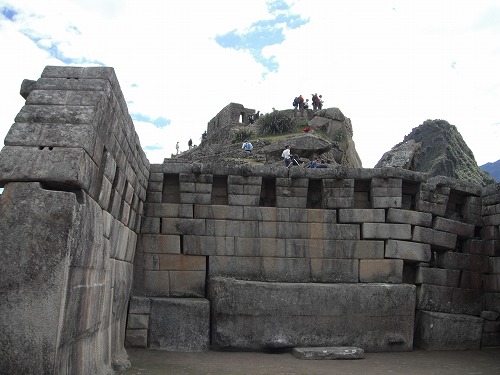 ワイナピチュを登り始めます。マチュピチュを見下ろす感じになるんですが、イイですねぇ。これは待った甲斐があります。しかし登りは結構キツイ。40分くらいで頂上に到着。ここにも遺跡があるんです。インカ、凄いなぁ。