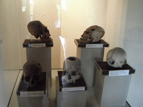 入館料は10ソル。プレ・インカの土器の所蔵が凄いときいてます。で、はたしてその通りでした。先ずは変形頭蓋骨。子供の頃から縛りつけ頭の形を変えたようです。これはマヤでもそうでしたね。脳外科手術の痕がある頭蓋骨もあります。