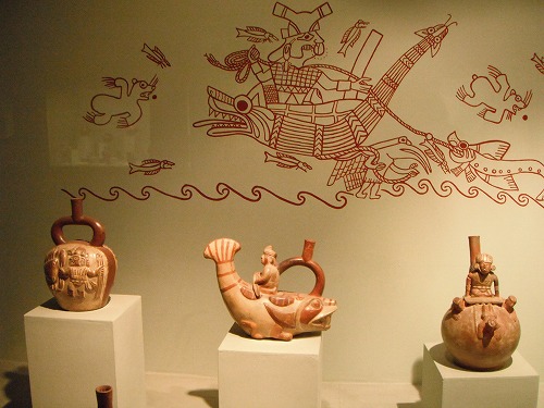 それからシカンやシパン、ワリ文化などの出土物などがありました。アルパカの土器やアザラシの土器など面白いもの盛りだくさん。いやぁ、本当に面白い博物館でした。