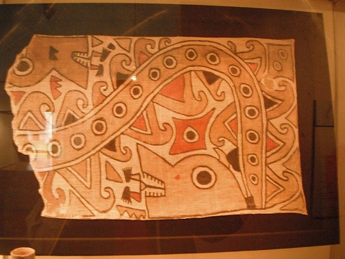それはナスカ文化の土器に描かれた絵。造詣的にはモチェの土器には敵いませんが、もうデザインが面白すぎ。ナスカは地上絵で有名ですが、土器も素晴らしい!! いやぁ、この博物館を訪れてナスカ文化ファンになてしまいました。