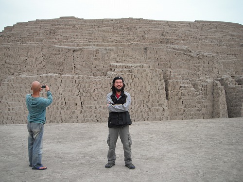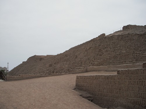 ワカ・プクヤナはミラフローレス地区にあるので歩きで。インカが来る1000年前に栄えたそうです。日干し煉瓦で出来た宗教都市だったそうです。巨大なピラミッド状の遺跡です。入場料は10ソル。ガイドがついてくれます。ガイドさんは日本語が堪能で(2年厚木で仕事と勉強してたそうです)いろいろ詳しく説明してくれました。リマは殆ど雨らしい雨が降らないので日干し煉瓦でも問題ないのだとか。なるほど、1つ疑問が解けました。