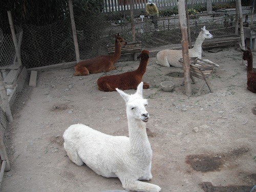 考古学的な質問もしましたがリャマとアルパカの違いの説明もしてくれました。リャマのほうが大きく、顔も長いし尾っぽが立っているとか。アルパカは顔が短く尾が垂れている、とのこと。グアナコとビクーニャは家畜ではなく野生だそうです。これで疑問が2つ解けました。ちなみに写真の白いのはリャマで茶色いのはアルパカです。リャマとアルパカは交配可能だそうです。相の子はパクリャマというそうです。