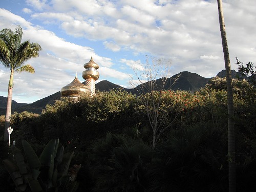 昨晩は暗くてよく見えませんでしたが、窓の外には絶景が! そして中東の宮殿を模した建物が。外に出て散歩。山が谷があり、素晴らしい風景。そして宮殿。こんなところに自分が招かれているとは。ちょっとそこら辺を歩いただけでも30分です。