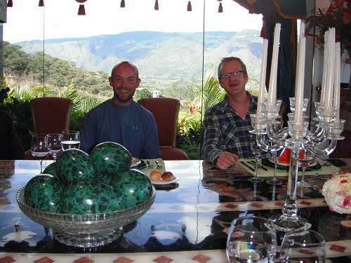 下に降りたらホルへ・ファンが待っていて、「母屋を案内するよ」と。母屋にはホルへ・ファンのお父さんが収集した美術品などが飾ってあり、素晴らしいの一言。テラスにプール。そして絶景が目の前に広がります。いやー、素晴らしい。テラスで珈琲タイム。こんな経験もしてみるものです。