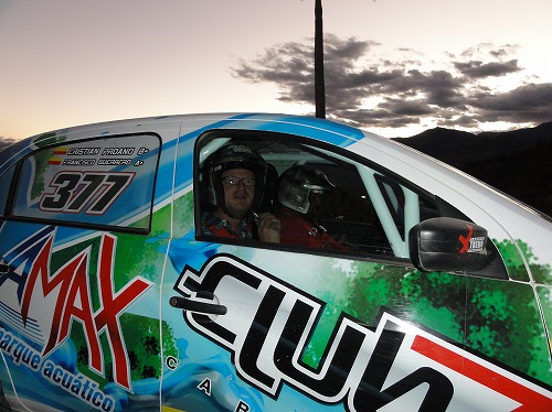 We went back to Parque Extremo and at the lakeside, we pitched our tents. Jorge Juan suggested us to get into his Rally Car driven by Felipe and go around the course.
