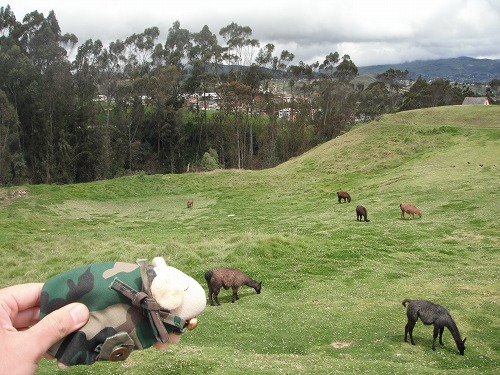 入り口の近くにリャマの群れがいました。ヒツジはこの前キロトアでアルパカさんたちに会いましたが今回はリャマさんたちに会いました。