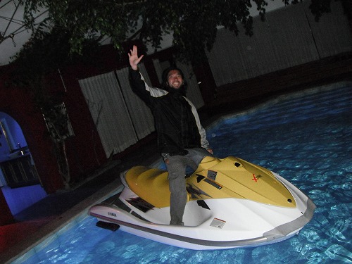 夜はそんなにお腹がすいてなかったのでアダムとハンバーガーを。8時半頃にセザールがマーク&クレアに頼まれた金具を持ってきてくれたので皆でピザ屋で一杯。10時ごろお開きとなってマーク&クレアは宿に戻りましたが、セザールが「Turi(クエンカの街が一望できる丘)に行くか?」と言うのでアダムとセザールの車(日産ムラーノ)に乗って行きました。途中でセザールの修理工場の隣の家に立ち寄りました。最初はオフィスとして作ったそうですが、家に改装したそうです。誰も住んでないのでアダムとワシで使っていいと。ジャグジーまであって、こりゃスゴイ。クエンカにもうすこしいようかなぁ。