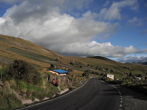 カラ・スールは諦めてマークとクレアと同じキロトア湖を目指すことに。しかしもう4時なので行ける所まで。ラタクンガ(Latacunga)から本線を外れてプヒリ(Pujili)方面へ。山道を登っていきます。景色が最高!しかし残念だったのはコトパクシの山頂が雲に隠れてその全容を拝めなかったことですね。