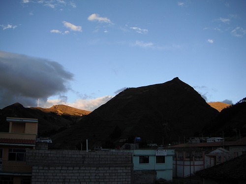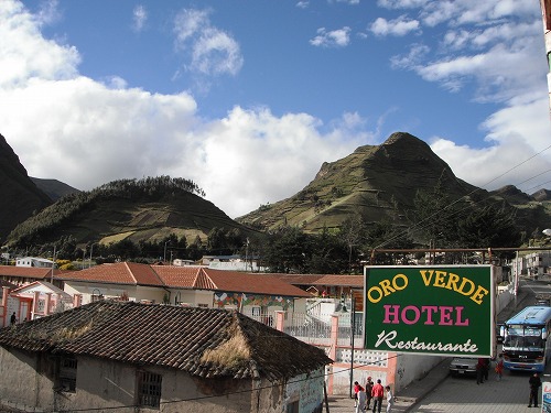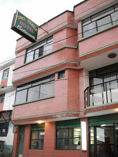 ズンバウア(Zumbahua)に6時前に到着。ホテル・オロ・ベルデ(Hotel Oro Verde)はガレージ付で1人6ドル。1階はレストランで夕飯1.5ドル。なかなかのディールです。