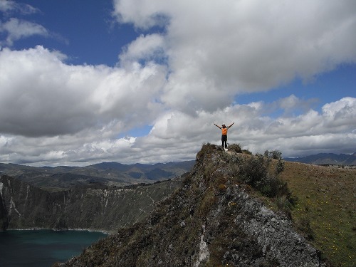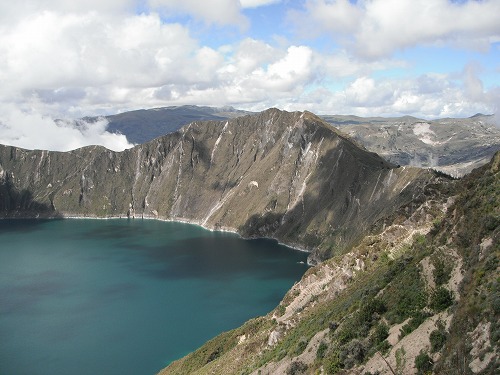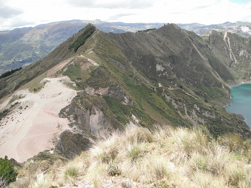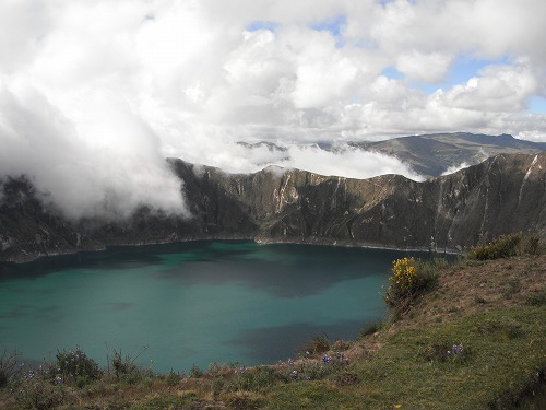 There was a gap in front of our campsite. Passing through the gap, the crator lake "Quilotoa" showed its magnificent appearance. A very beautiful lake it was. The set up was just perfect. The scenary made us think "we are really n the middle of Andes". I was glad I went there.