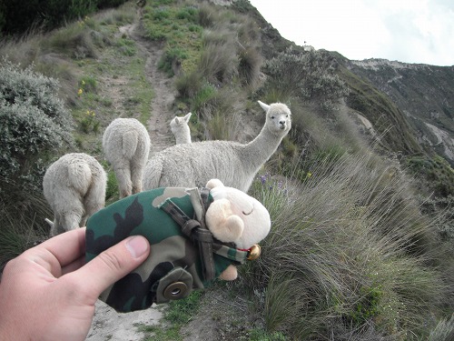 We encountered with a pack of white Alpacas. They were so cute. There was a baby too. Mr. Sheep was very happy to see them.We could forget about fatigue.