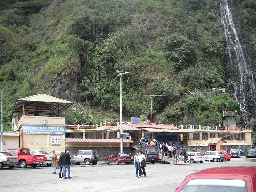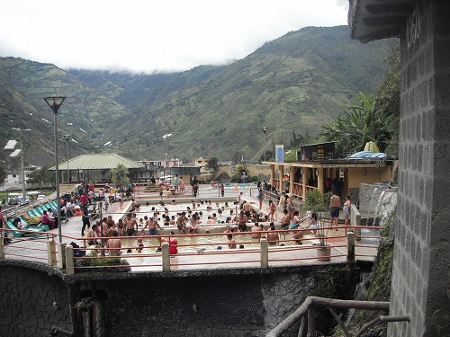 温泉施設は地元民でいっぱい。入浴料は2ドルです。ここもインディヘナの割合が多いですね。面白いことにインディヘナの女性は服を着たまま浴槽の周りに立ってるだけなんです。もちろん水着で湯船に浸かってる人もいますが。入浴料払ってるのかなぁ?浴槽は3つあり、水、ぬるま湯、39度くらいのお湯とあります。そして滝から水を引いた聖水シャワーもあります。