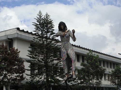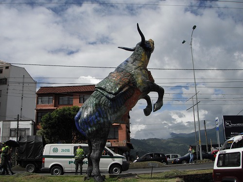 メデジンから山を越えたカルダス(Caldas)という街に来ました。多分本線を走ってたらこの街に入らなくて済んだかもしれませんが、街中に来てしまいました。ナビに従って本線まで。無事に抜けられましたが、途中信号待ちでバスがいきなりリバースしてきてあとほんの数センチのというところでフロントに突っ込まれるところでした。危ない、危ない。バスの横を通ったら、運転手が苦笑いしてたので中指を突き上げてやりました。