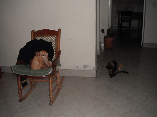 7時ごろマークと話していたら、ノアが「モニカ(彼女)の家に行くぞ」ということになりモニカの家にお邪魔することに。セマナ・サンタということで従兄弟2人、弟とその友達、愛犬フィト(Fito)と愛猫ボニー(Bonnie)の出迎えを受けました。