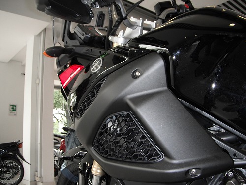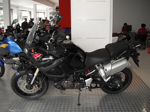 帰り道にヤマハのディーラーをのぞいてみるとスーパーテネレ1200が置いてあります。実物を見るの初めてです。早速写真を撮ります。