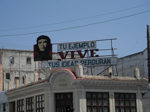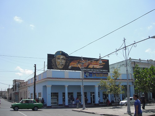カミロの街の筈なのにチェの看板が目立ちます。キューバではカミロの人気はチェに劣らないと聞いていましたが、やはりチェの方が目に付きますね。「Che, caballelo sin tacha y sin miedo - チェ - 穢れと恐れを持たない男」、「Tu Ejemplo VIVE, Tus ideas perduran - あなたの見本は生きている、あなたの考えは残り続ける(消えない)」とあります。