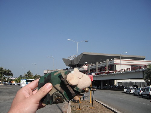 ローラの飛行機は4時半に到着なので2時半ごろ空港に。空港職員バスはホアキナに聞いてもわからないのですが、P12バスで空港が見えるところまで行ってそこから乗り換えるようにと教えてくれました。P12バスは1CUPです。約1時間揺られます。それにしてもバスは満員状態です。荷物もってたらきついなぁ。空港が見えたので降りて、他のバスを待つのもカッタルイのでターミナル3を目指して歩きました。30分くらいです。
