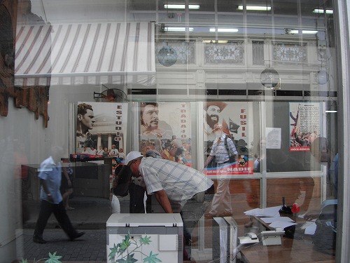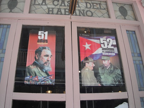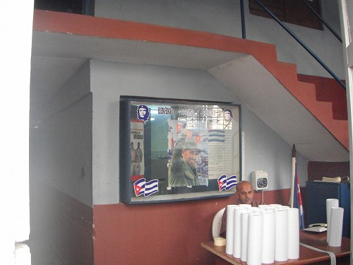 歩いていると、フィデルの写真を掲げてるところもあります。フィデルは自分の銅像などを作らせないといいます。確かにフィデルのポスターや看板はチェやカミロより少ないですね。