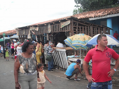 屋台で食べ物をつまみながら歩きますが、まあ小さな町なので直ぐに全部見てしまいました。アメリカ国旗のバンダナが売っていたり、チェ商品が売っていたりと中米諸国と大した違いはありませんね。ソフトクリームが2CUPなのは破格ですが。