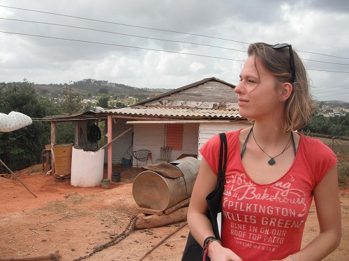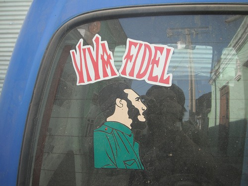 そして、なんと「Viva Fidel」ステッカーを貼った車発見!これは欲しいぞ!! 何処で手に入るんだろう。車の持ち主は近くにいないので、近くの店の人に聞いてみますが、「わからない」と。ローラは「インターネットで探せば良いのよ」と。うーん、そうなんだけどやっぱりキューバで見つけたいじゃないか。