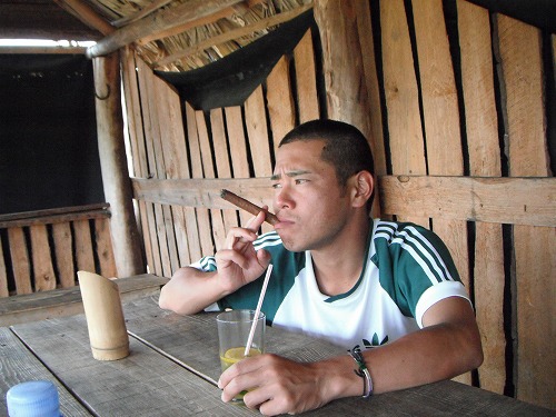何故かバスガイド(オッサン)が付いてきます。別にガイドは要らないよ。ローラが彼のしゃべり方が気に食わないようで、むっつりしてます。途中でお土産屋、葉巻工場、ビニャーレスが一望できる見晴らしと休憩しました。上の写真は葉巻工場でいただいたコーヒーを飲んでるところです。葉巻も一本ずつお土産にもらいました。