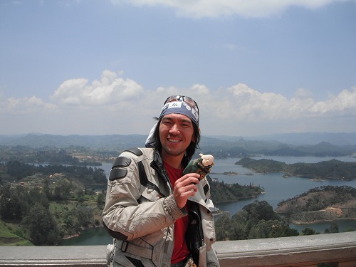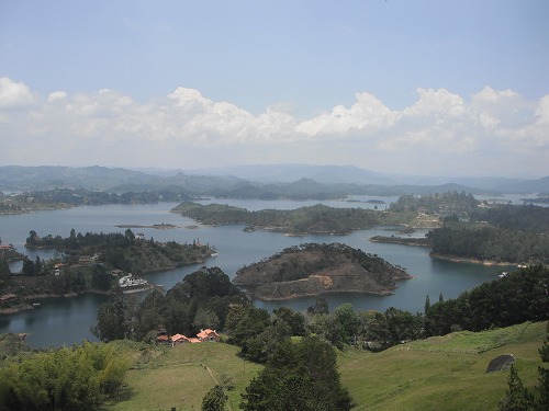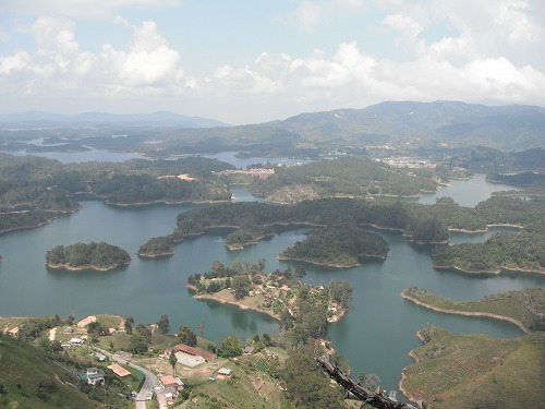 ようやくグアタペに到着。メデジンから90キロくらいですか。先ずは岩の麓へ。ここまでバイクで行けます。駐車料はバイクの場合1000ペソ。ここから湖?川?を見下ろす風景もまたいいです。