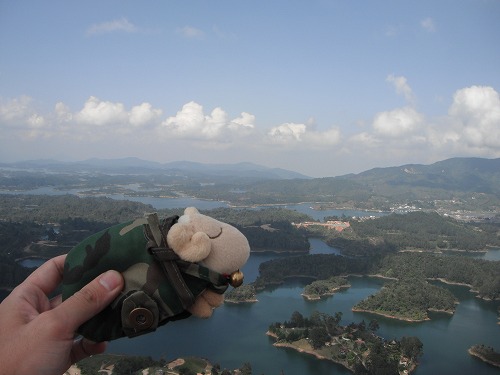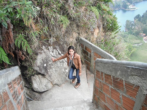 腹ごしらえが済んだら岩を登り始めます。地上200メートル。頂上まで階段がありますがもともとグアタペの標高が高いのでなかなかキツイです。そうそう入り口で1人8000ペソの入場料払います。高い・・・。