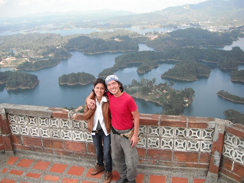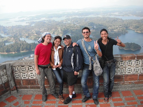 しばらく景色を眺めたらイタリア人と日本人のコンビが登ってきました。ジョルジョとシンスケ君。中米でであって一緒に旅をしてるそうです。話をしてたらコロンビア人のカップルが登ってきました。ボゴタから観光で来てるそうで旦那さんのルイス(Luis)は弁護士(Aogado)でなにか困ったら連絡してと名刺をもらいました。面白いオッサンで色々冗談をいって我々をワラかします。「これからどこに行くんだ?」と聞くので「とりあえず来週独りでキューバに行くからクライディーはメデジンでお留守番」と言ったら、「メデジンはプレイボーイが多いから危険だ。ボゴタの家に来なさい」と。奥さんも「寝てる間は旦那をベッドに括り付けておくから安全よ!」なんてジョークを言ってます。クライディーも乗り気ですし、キューバから帰って来たらクライディーをボゴタに迎えに行ってボゴタに2-3泊ってのも悪くないな。