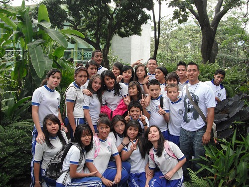 クライディーが出てきましたがワシが20人くらいの中学生たちに囲まれてるのでさぞかしビックリしたでしょう。中学生たちはクライディーがメキシコ人なのにも大はしゃぎ。写真を撮ってくれとみんなで代わる代わる撮ります。何人かはデジカメ持ってるんですよ。それにはビックリ。コロンビアは中米諸国よりも豊かだなぁって感じますね。