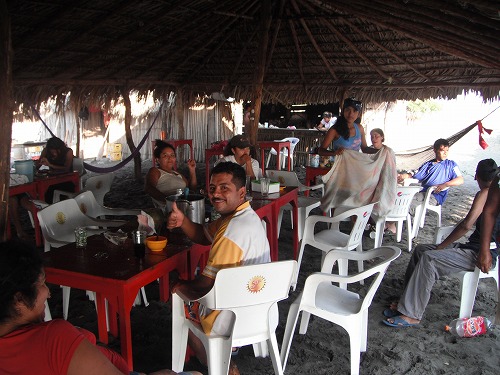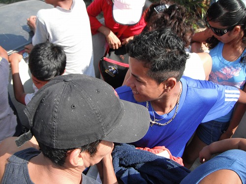 フチタンでバスを乗り換えアリアガまで。写真はフチタンでバスを待っているクライディー。アリアガからコレクティーボ(乗り合いタクシー)でトナラまで。トナラからパレドンまでまた違うコレクティーボでと、合計42時間の旅でした。あーー、疲れた。