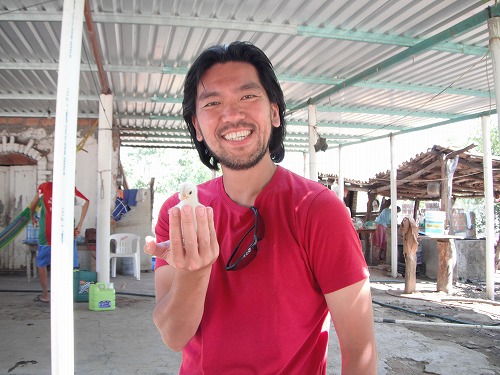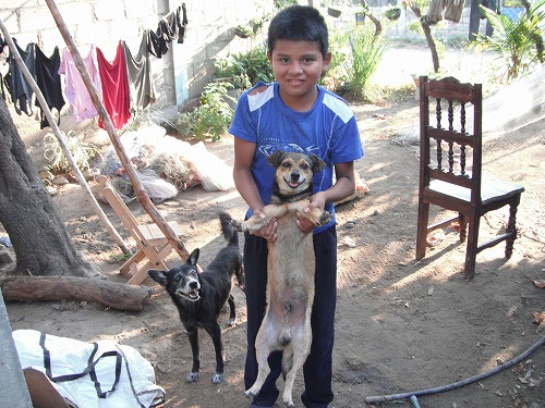 今日はパレドンを去る日。。朝トナラにバスのチケットを買いに行き、親戚の家をめぐります。クライディーもしばらく家族に会えなくなるので、心中は複雑ですよね。おばあちゃんの家はランチョ(Rancho)と言って七面鳥や鶏を沢山飼っています。ちょうど雛を買いに来た人がいたのでみんなで雛を捕まえます。うーん、三郎、捕まえるのが下手です。一匹子犬がいたので遊んでいたら、えらく懐きました。丁度クライディー家の番犬デルフェィン(イルカっていう意味)が14歳で老犬なのでこの子犬をもらっていくことに。名前はフニオール。チワワとなんかの雑種ですかね。あんまり番犬としては期待できないような・・・。
