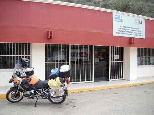 ペルミソはイミグレの隣のオフィスで発行してくれます。必要な書類は、バイクの登録証、国際免許書、メキシコのペルミソキャンセル証明書。