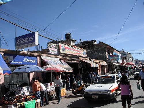 村と言うわりには人口が6万人近くあります。カザフとスティーブンが腹が減ったと言うので、2人がタコスを食べるのを待ってから教会へ。教会に入るには入場料20ペソ支払います。写真撮影は厳禁です。