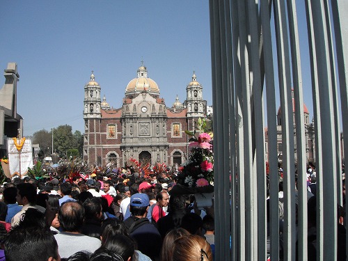 今日もダラダラする気だったのですが、カザフ、ツルさんに誘われてグアダルーペ寺院に行って来ました。バシリカと言われメキシコ国内カトリック教会の総本山で褐色の肌の聖母グアダルーペ祭には数十万人単位で巡礼に来るという所です。そして今日がその日。1番盛り上がるのは前日から明け方にかけてらしいのですが、我々は昼前に出かけました。 トルタをほうばるツルさんの図。