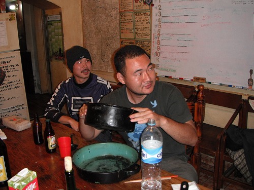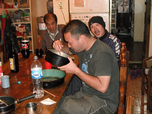 夜は味噌鍋パーティー。10人で鍋をつっつきます。鳥肉に魚に豆腐に野菜。〆は春雨にラーメン。美味かったなぁ。カザフの大食いっぷりにはみんな唖然。流石横綱です。