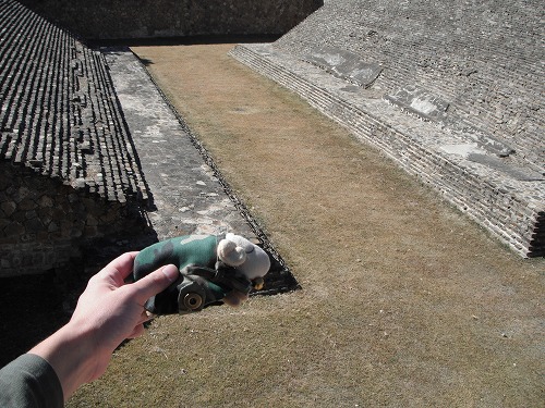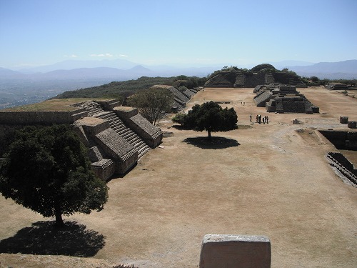 モンテアルバン、イイですよ!遺跡としてはテオティワカンよりもずっとイイ。やはり修復はコンクリートでされてますが…。ずっと見たかった踊る人々のレリーフをこの目に見る事が出来て、感無量。あー、来て良かった!