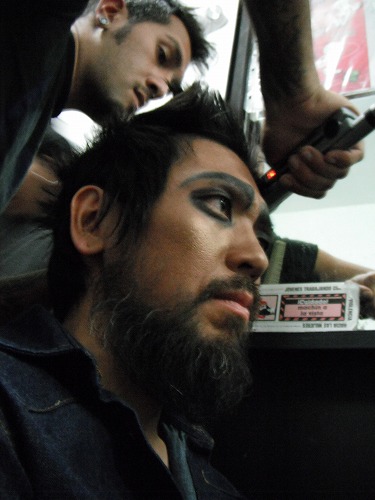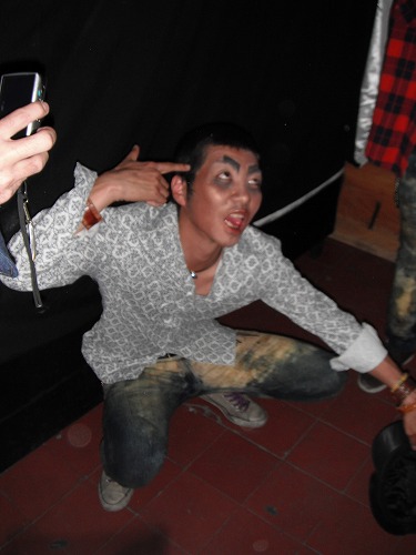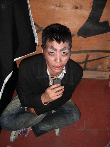 Yoshi disappeared for a while and when he came out he got a really wired make-up on! Everyone laughed at him. BUT every one of us got the wired make-up!! Now we were totally upset with our outlook. There was no way we can pick up any chick with our looks.....