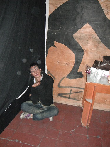 ようやくお迎えが来たのは6時半。それから更に車を待って7時過ぎに出発。服を取りに行ったりして会場に着いたのが8時過ぎですかね。 まずは歩き方の練習をし、着替えます。流石はメキシコファッション、ストーンウォッシュ的な脱色されたスキニージーンズにデニムシャツ。これはかっこ良くないぞ。 しかも、Yoshiさんが消えたと思ってたら、凄いメークをされて出て来ました!これは罰ゲームか?我々は大丈夫かと思いきや、皆とんでもないメークを施されてしまいました…。これじゃ、会場に来ているお姉さんをナンパ出来ませんね。