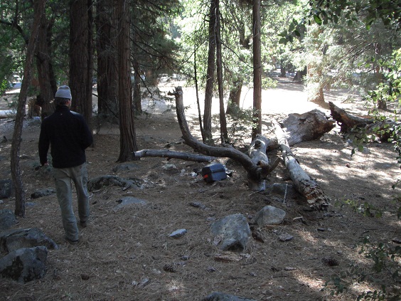 風景イイですね。ヨセミテ、気に入りました。東の入り口からヨセミテバレーまではかなりの距離。5時過ぎに到着しましたが、5ドルのキャンプ場が満杯。仕方が無いのでBridalveil Creekという山のかなり上の方のキャンプ場まで走りました。標高2,400メートルです。夜は冷えそうです。6時過ぎに到着。テントを張り夜飯を食べて寝るだけです。ここは熊が出るので熊対策をしてから寝ます。